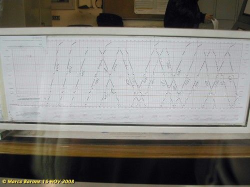 Entriamo a visitare l'Ufficio Movimento: dalla vetrata si vede l'orario grafico di tutta la ferrovia