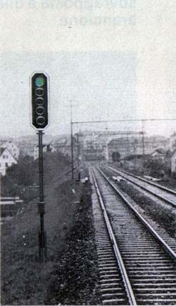 - 95 Km/h Km/h per i treni di categoria R - 90 Km/h per i treni delle altre categorie due luci verdi sovrapposte diagonalmente ed una luce arancione in alto a sinistra: Il successivo segnale principale è disposto a via libera con conferma di riduzione di velocità |