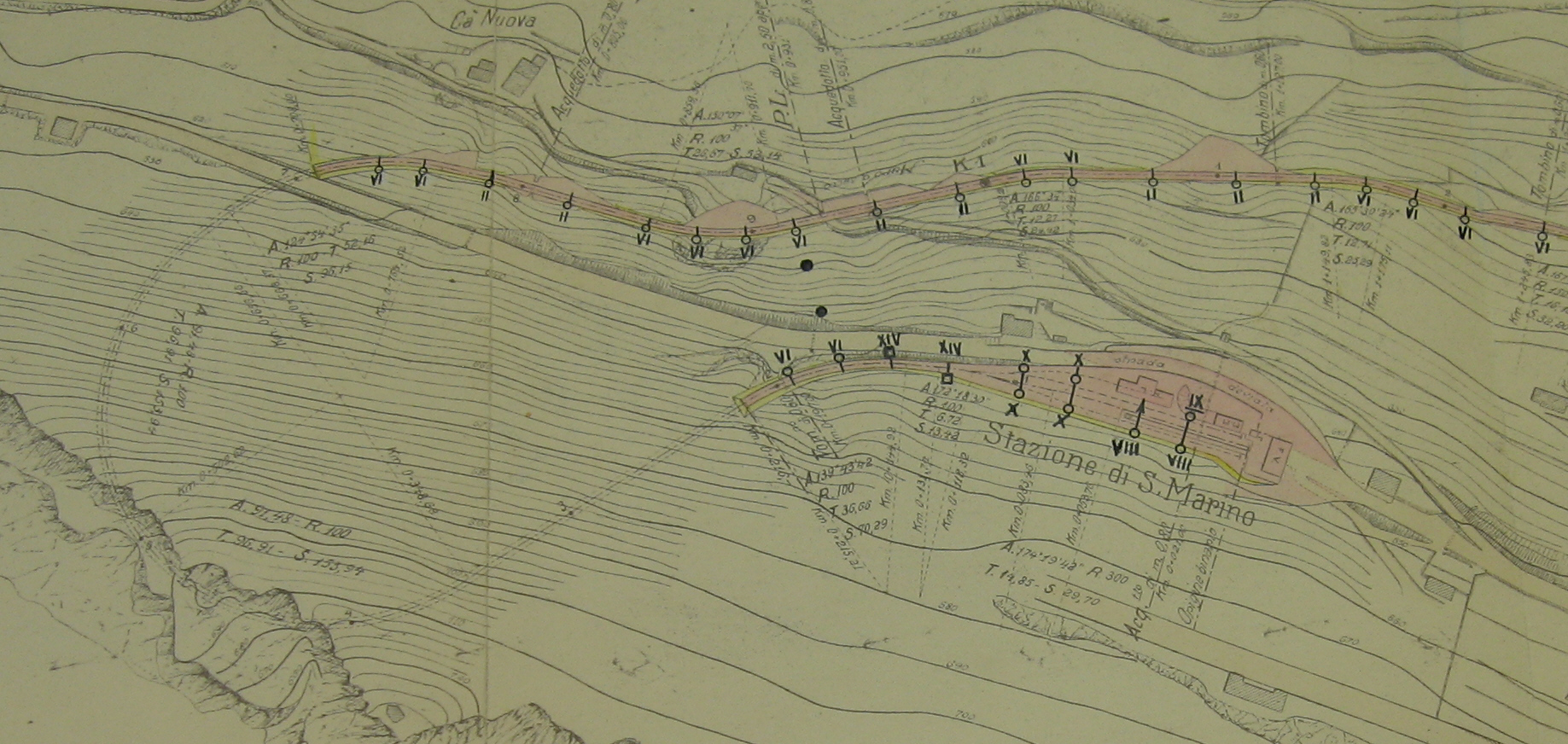 Caro(e prezioso Marino)Hanno ragione a dire che sbuffava!!!Ricordano le due locomotive a vapore,una di solito nel tratto riminese(una loco di rodiggio c)e l'altra sicuramente più usata,cabinata che durante la costruzione della ferrovia trainava i treni cantiere.C'è tanto di foto sul bel libro di G.G.Turchi "Rimini-San Marino in treno" ed. ETR.Comunque anche io tanti anni fà sono andato all'Archivio di Stato e la planimetria che hai postato di San Marino,deve essermi sfuggita.I numeri romani corrispondono nella distinta dei pali del tipo utilizzato in quel punto.L'ultimo progetto postato potrebbe riferirsi ai tralicci di alimentazione della sottostazione o al feeder che da questa alimentava la ferrovia.Credo sia importante scambiarci i documenti trovati.In questo modo è possibile un maggior approfondimento su molti aspetti tecnici che altrimenti finirebbero nell'oblio.Inoltre io posso correggere eventuali errori di riproduzione incorsi nel plastico! Dai,questa ricerca mi appassiona moltissimo!