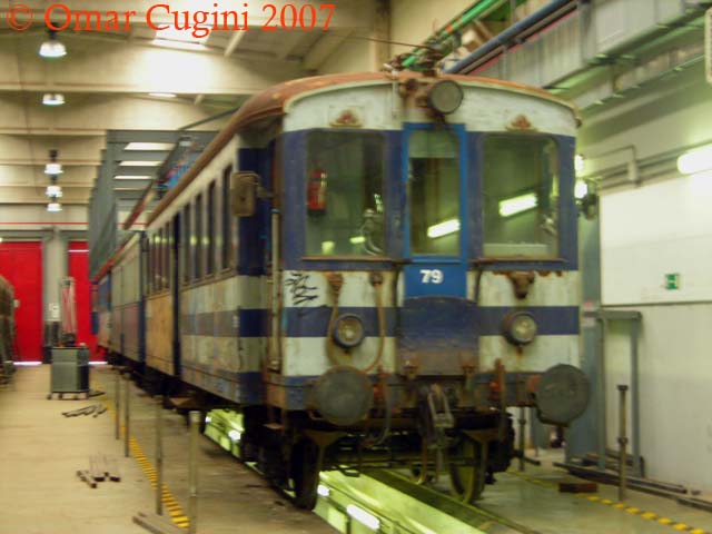 La 79, uno dei convogli ricostruiti per il servizio urbano, munendoli di telecomando. Queste elettromotrici non hanno più il bagagliaio. Gli interni fanno più schifo di quelli della ex carrozza salone