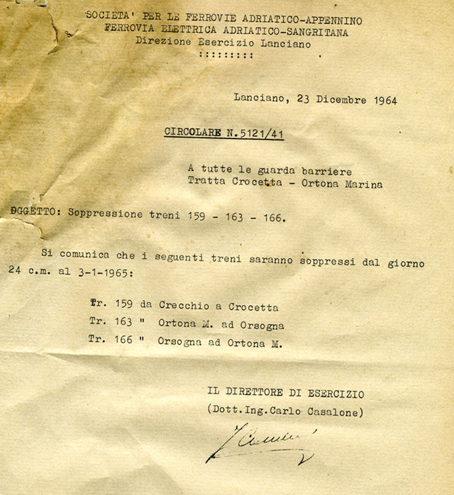 Non saprei dirti. Sicuramente la linea non più percorribile oltre Archi ne rende di fatto inutile l'effettuazione: significherebbe, come è stato fatto nell'ultimo anno di esercizio, sciropparsi un lungo viaggio in treno ed un altrettanto lungo viaggio in pulmann, per raggiungere le zone d'interesse (Quadri\Villa S.M.).