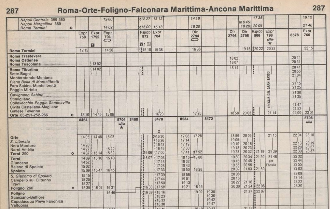 Sbagliato. Sull'ufficiale il quadro 70 è della Brennero - Bolzano - Verona. Quello della Roma - Ancona è il 287. Questo è quello invernale 1978.